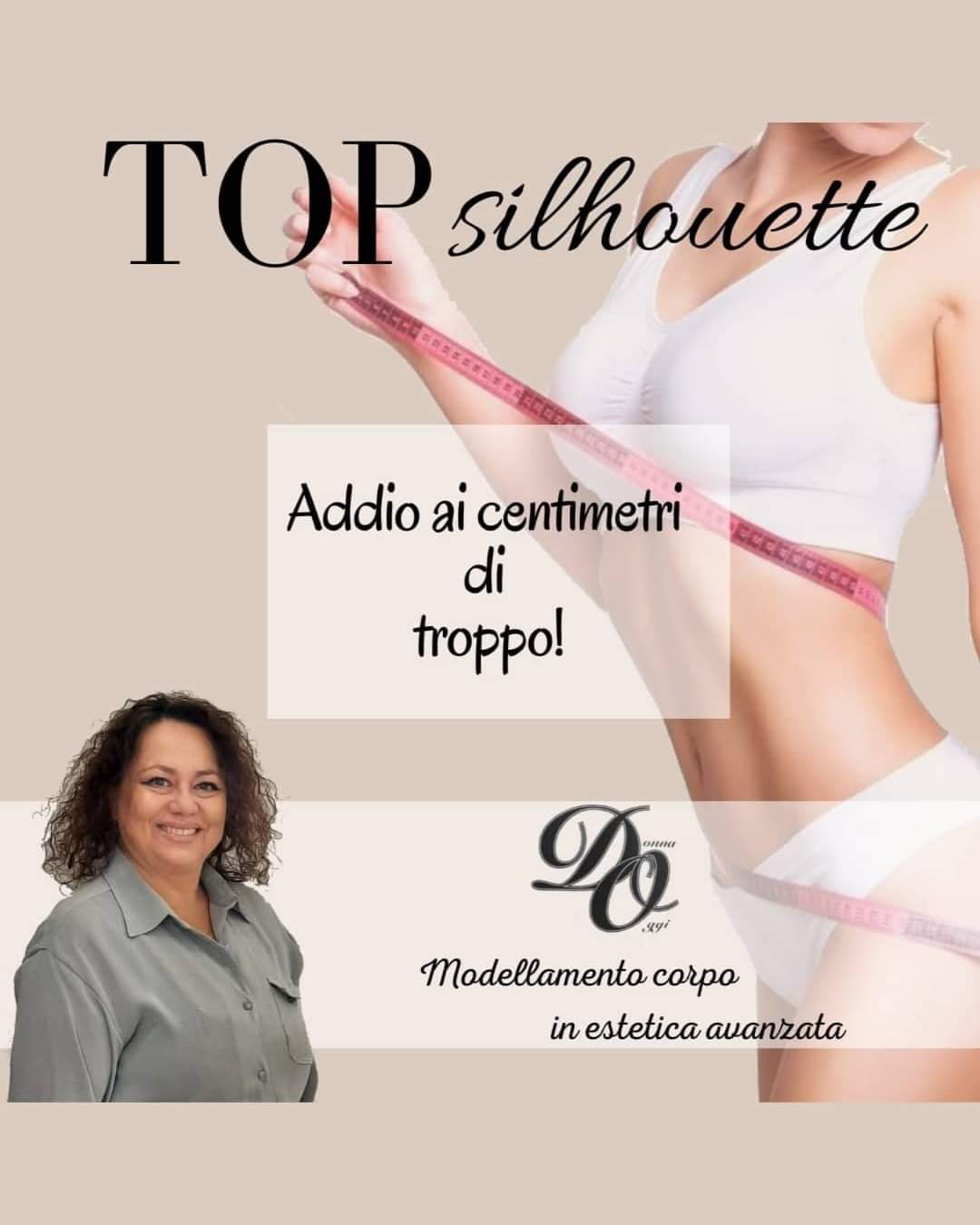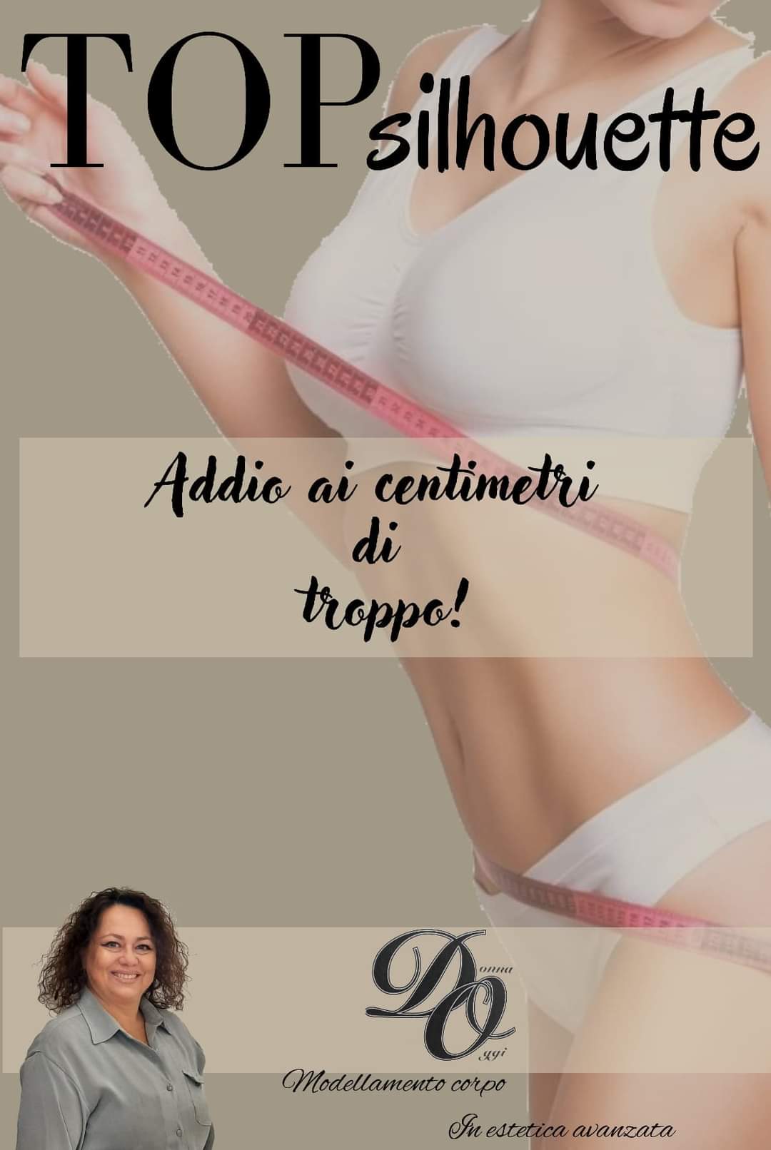 Donna oggi nasce nel 2015 Centro estetico specializzato nel dimagrimento e modellamento e nel trattamento della cellulite.Luogo ideale per ritrovare bellezza ed equilibrio il centro estetico Donna Oggi offre alla propria clientela un ambiente intimo e accogliente nel quali dedicarsi piacevoli istanti di benessere.La filosofis del centro è quella di aiutare le persone ad ottenere un benessere psicofisico con il modellamento del proprio corpo, andando a ridurre e migliorare tutte quelle zone di maggior interesse che possano essere addome, fianchi, glutei, braccia, cosce, sia uomo che donna.Un luogo di incontro dove farti sentire a tuo agio con il tuo corpo grazie alla continua formazione di studi sull’anatomia, l’epigenetica, la costante ricerca di cosmetici ad alto impatto ed il monitoraggio continuo e costante in cabina negli anni mi hanno dato modo di vedere risultati nella perdita di centimetri e di peso già dalle prime sedute, nasce cosi il metodo TOP-Silhouette.